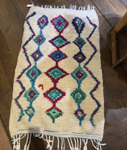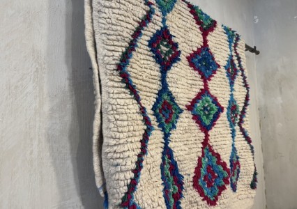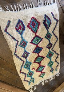 Alfombra de lana anudada a mano en las montañas de Atlas, Marruecos por la tribu Ourika.
