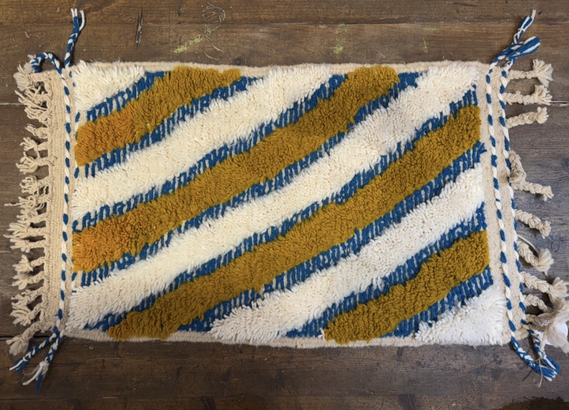 Alfombra de lana anudada a mano en las montañas de Atlas, Marruecos por la tribu Ourika.