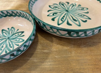 Cerámica procedente de Andalucía que se caracteriza por su color y sus diseños originles. Hecho a mano por alfareros que continuan con el trabajo artesano generación tras generación.