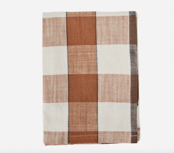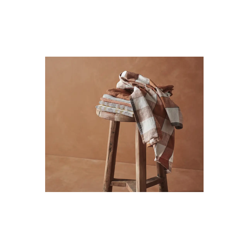 Trapo de cocina 100% algodon con estampado de cuadros color terracota y blanco roto.