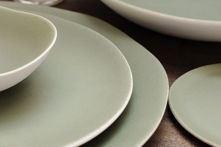 Componentes de Vajilla de acabado mate, hecha a maño en Francia. Disponibles distintas formas y medidas.