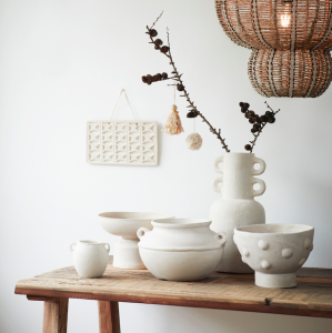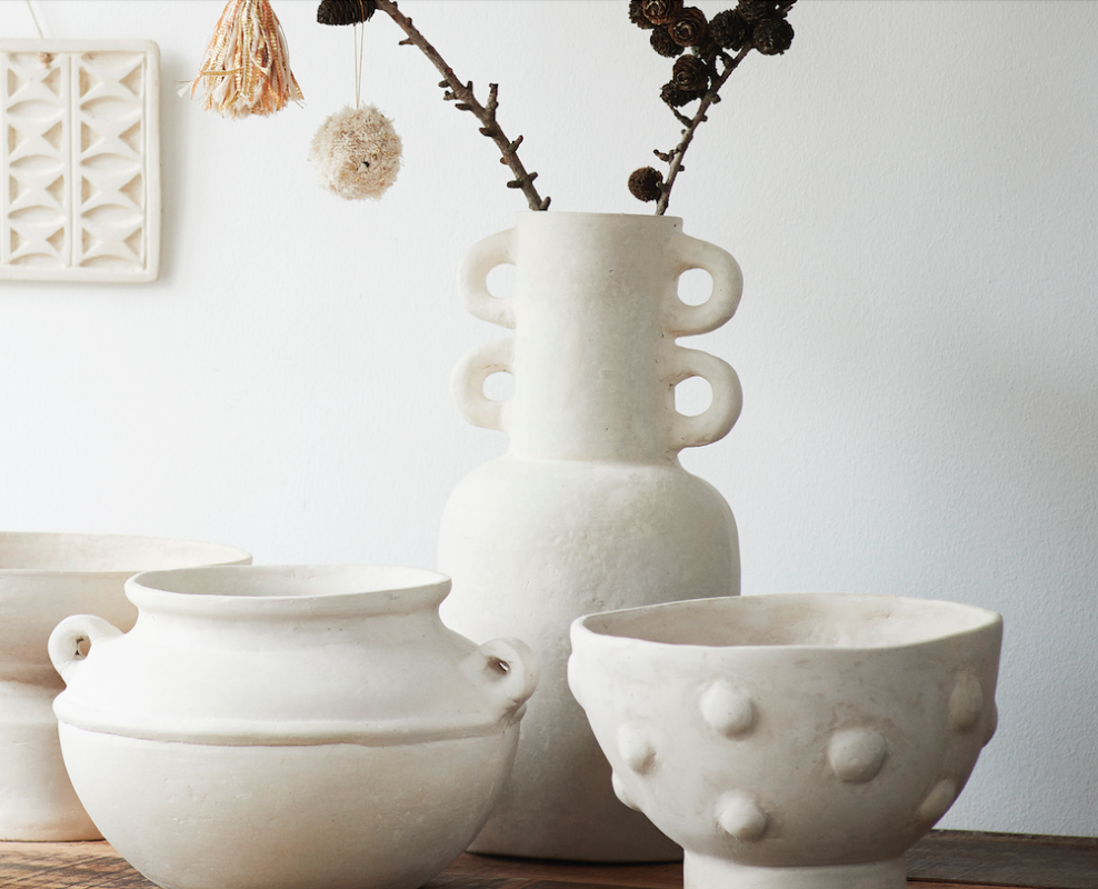 Jarron hecho a mano de papel mache, 60% papel 40% yeso
