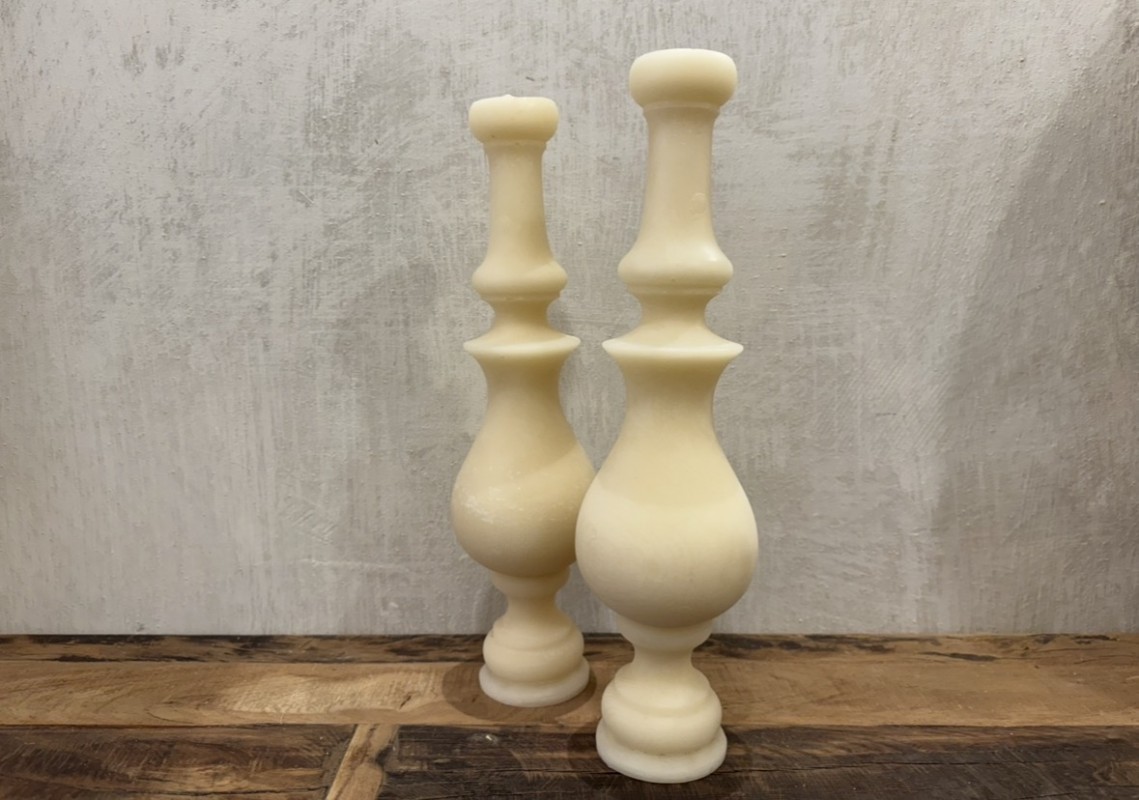 El proceso de fabricación es completamente artesanal, lo que significa que cada vela es única. Desde el vertido de la cera hasta la mezcla de pigmentos naturales, todo el proceso se hace de forma manual. Debido a esta atención meticulosa, los colores y formas pueden variar sutilmente, asegurando que cada vela sea verdaderamente especial.