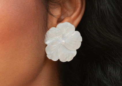 Gracias al nácar, estos pendientes simulan la figura de una Dalia blanca de una forma elegante y única. Los pendientes Dalia envuelven completamente la oreja y están adornados con una perla barroca natural en el centro simulando el estigma.
