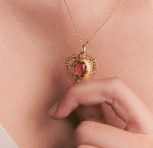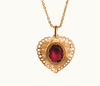 Inspirado en los relicarios y ornamentos devocionales, Sacro Cuore reinterpreta el Sagrado Corazón con líneas limpias y un aire art déco. Una piedra roja en el centro simboliza el amor, la fe y el fuego interior. Incluye una delicada cadena de 44 cm o de 55 cm. Todo bañado en oro de 18 k.