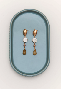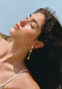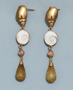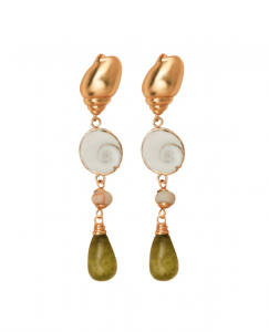 Esta nueva versión de los pendientes Caracola combina la belleza del cuarzo verde con una concha natural llamada Ojo de Santa Lucía, que según la tradición italiana se considera un amuleto de protección. Asociada a la buena suerte y la prosperidad, se cree que protege contra el mal de ojo y las energías negativas.