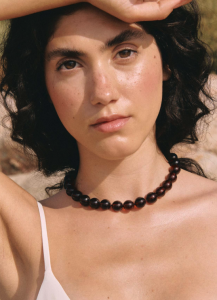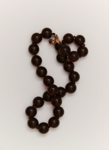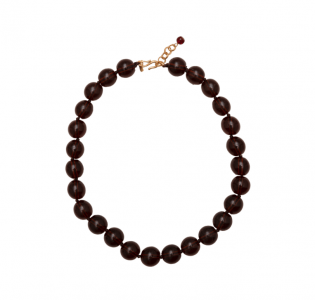 El collar Calima está compuesto por grandes cuentas de cristal en tonos marrones profundos que evocan la calidez de la tierra y la luz dorada del atardecer. Inspirado en la atmósfera de la calima, su color transmite una sensación de estabilidad y calma. La pieza está hecha a mano y cada cuenta está separada por nudos realizados a mano, un detalle artesanal que aporta mayor resistencia y un acabado de alta calidad.