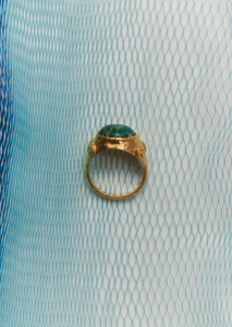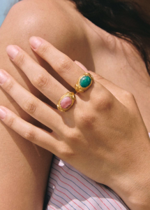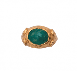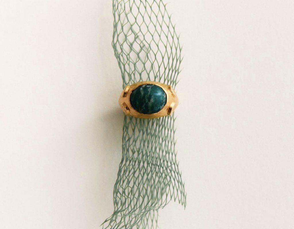 Persia es un anillo inspirado en la joyería de la época clásica. En su centro, una piedra Amazonita verde protagoniza el diseño, evocando gemas históricas asociadas a la paz y el equilibrio. A ambos lados, las volutas esculpidas en el metal recuerdan los ornamentos de la joyería persa y clásica, líneas orgánicas que aportan movimiento y armonía a la pieza.