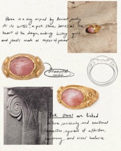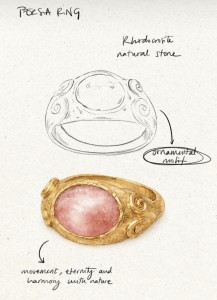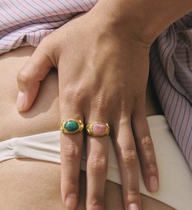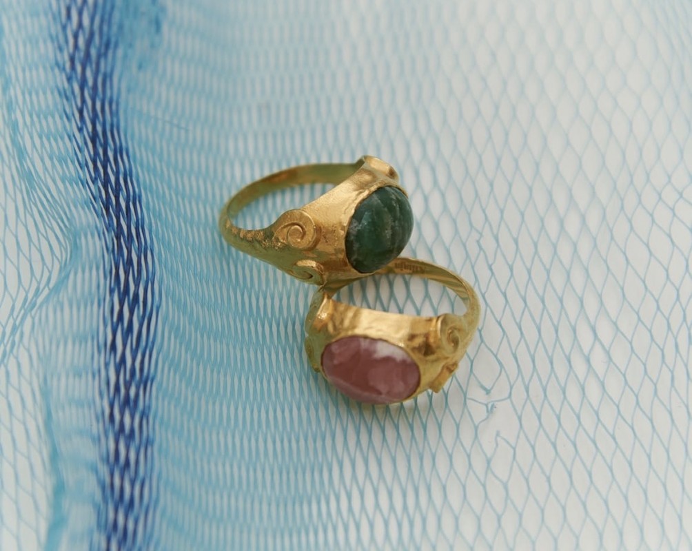 Persia es un anillo inspirado en la joyería de la época clásica. En su centro, una piedra Amazonita verde protagoniza el diseño, evocando gemas históricas asociadas a la paz y el equilibrio. A ambos lados, las volutas esculpidas en el metal recuerdan los ornamentos de la joyería persa y clásica, líneas orgánicas que aportan movimiento y armonía a la pieza.