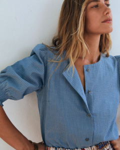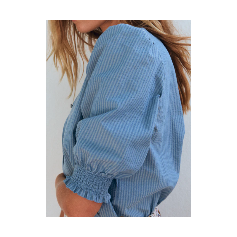 BLUSA CLEO, MANGA CORTA FRUNCIDA