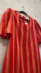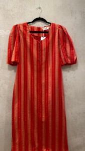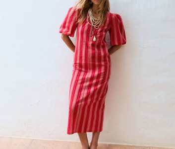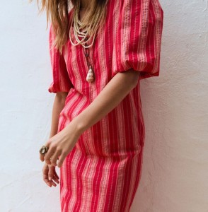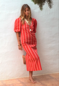 VESTIDO MIDI CORTE RECTO CON MANGA MUY ABULLONADA POR ENCIMA DEL CODO. ESCOTE REDONDO. PARTE DELANTERA CON BOTONES. Las mangas abullonadas le dan un bonito volumen.