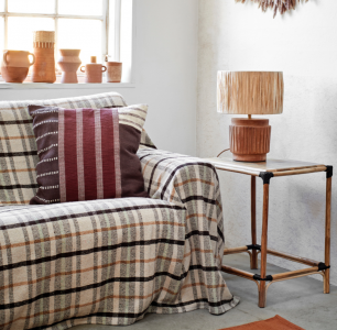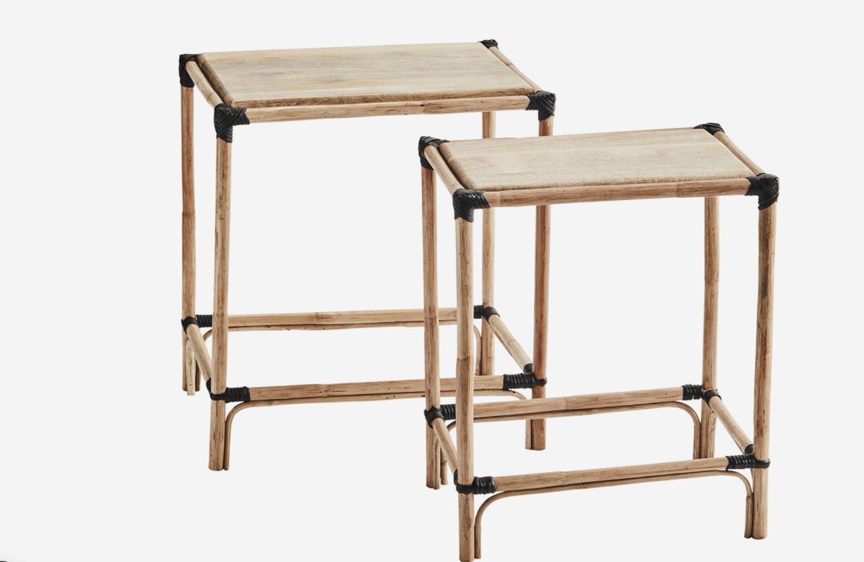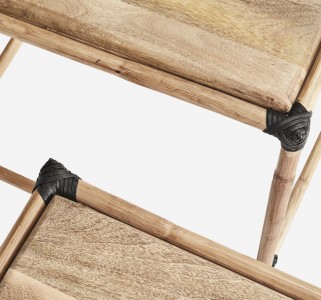 Mesa auxiliar de madera y bambús hecha a mano y con detalles de Ratan en negro