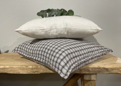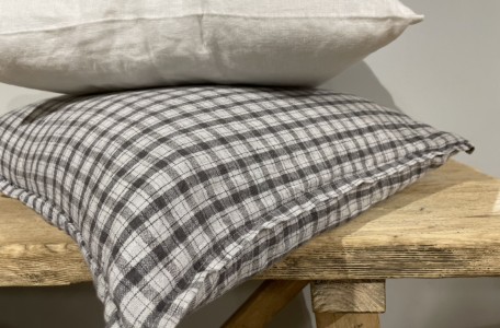 Funda de Cojín 100% Lino Lavado de cuadros gris claro y gris oscuro