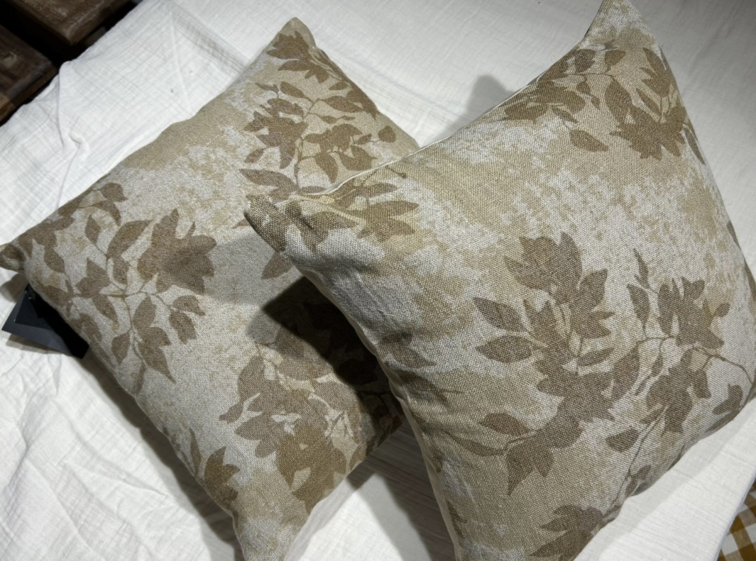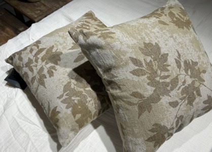 Estampado de hojas y fondo color natural ,llevan cremallera