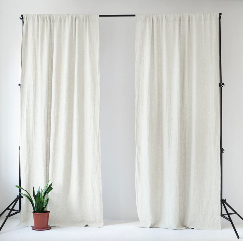 Cortina de lino natural con tunel para pasar la barra.